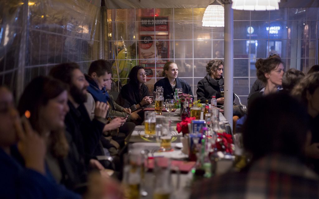 Drinking while walking while hosting while thinking while making together is the leitmotiv of BAR project, who takes its name from the popular and social gathering place in south European culture in order to recontextualize it, and be able to work and practice (reflection-in-action) in a flexible, informal and critical way. This working condition and status goes beyond the bar extending curatorial practice into working on public realm and takes the city of Barcelona as a public project space.