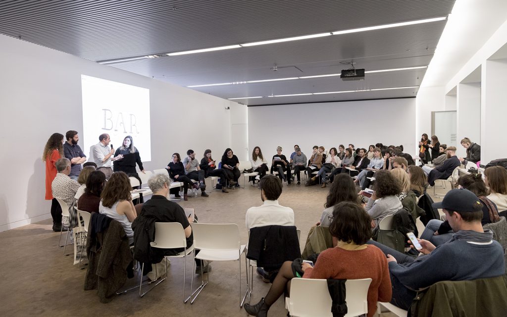 The BAR International Symposium “Making Public Program” consists in an intensive week of working groups, roundtables, actions, My studio visit, Walking tour, performances and drinks to celebrate BAR project 2013-2017 Public Program and reflect on the past, present and future of what public programing means. A number of guest practitioners will spend a whole week in Barcelona in order to discuss and perform together on the topic; the output of that brainwork will be made public and opened to the participants of the symposium and to a larger public through the various activities building the symposium.